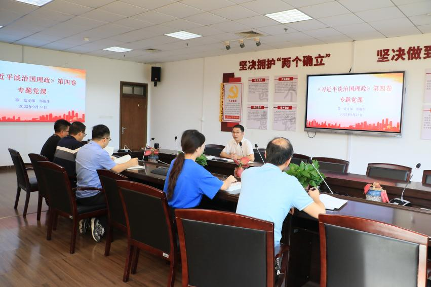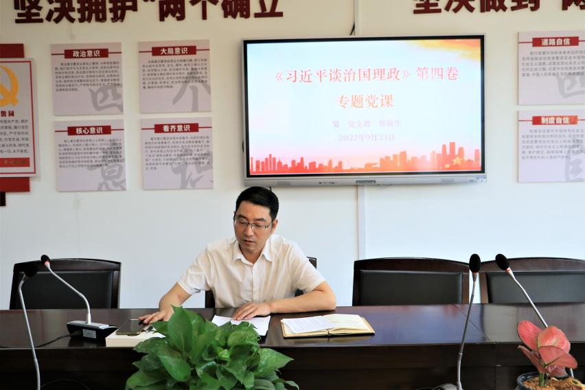 2022年9月23日上午,第一党支部召开组织生活会,专题学习《习近平谈治国理政》第四卷,支部书记郑银生领学并上党课。
