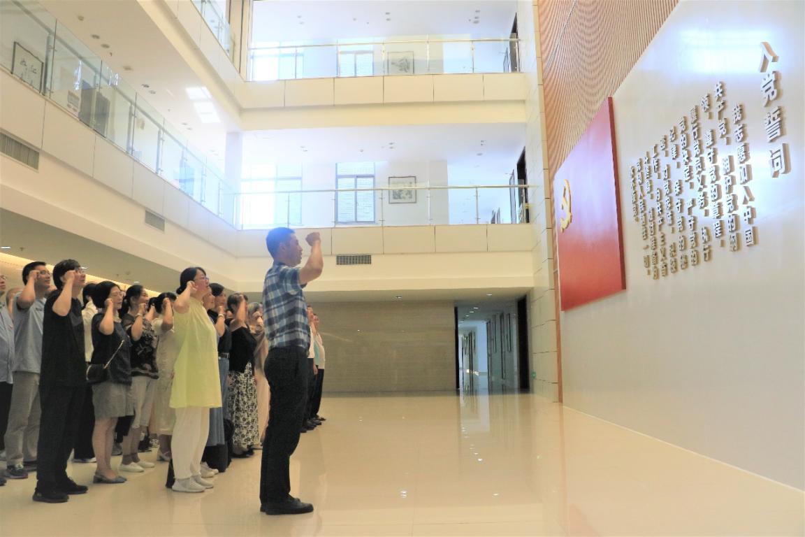 最后,由图书馆党总支书记冯方盛领誓,带领全体党员面向党旗,庄严宣誓,再次重温了入党誓词,用铿锵有力的誓言表达出内心坚定的理想信念。