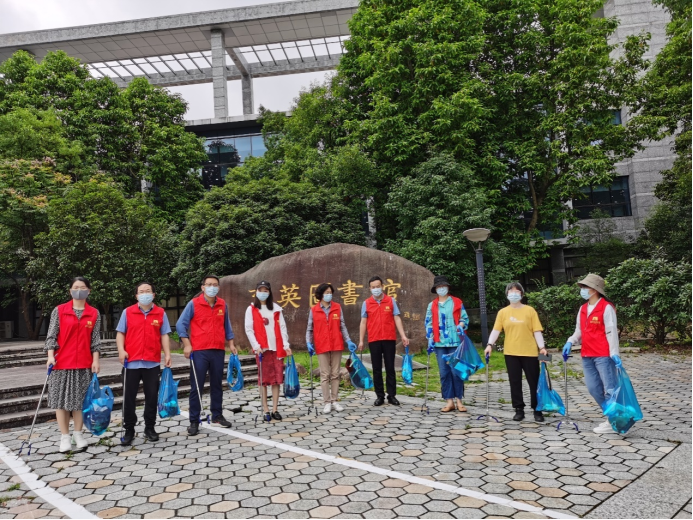 6月8日上午,第五党支部全体党员在支部书记周志峰带领下,在图书馆周边草坪园区开展以“抗疫情、创文明、保平安”为主题的党日活动,清理图书馆周边垃圾,美化周边环境。