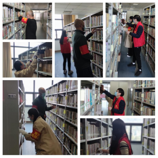 2023年4月10日下午3点,第二党支部全体党员和入党积极分子胡婉悦,在育英图书馆5楼社科阅览室集合,对学者捐赠图书按捐赠者顺序,抽取遗留代书板、理架清扫,核验标识……希以干净整齐的面貌迎接各类读者。