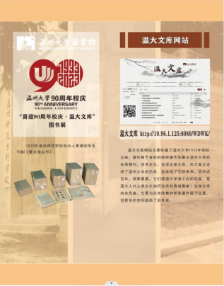 在温州大学90周年华诞来临之际,为追忆我校过往九十年的风雨历程,九十年的踔厉奋进,扬温大精神,抒爱校情怀,图书馆正在精心筹备“喜迎90周年校庆*温大文库”图书展。