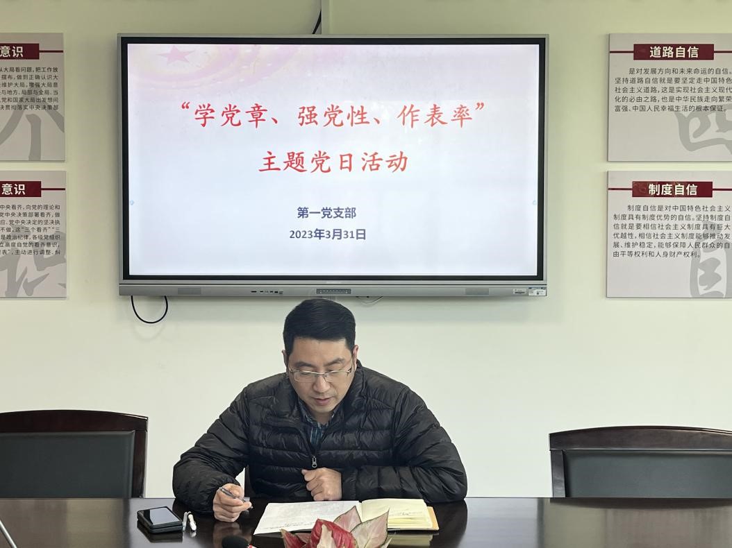 3月31日下午,第一党支部在B201会议室开展“学党章、强党性、作表率”主题活动,党支部书记郑银生主持会议。