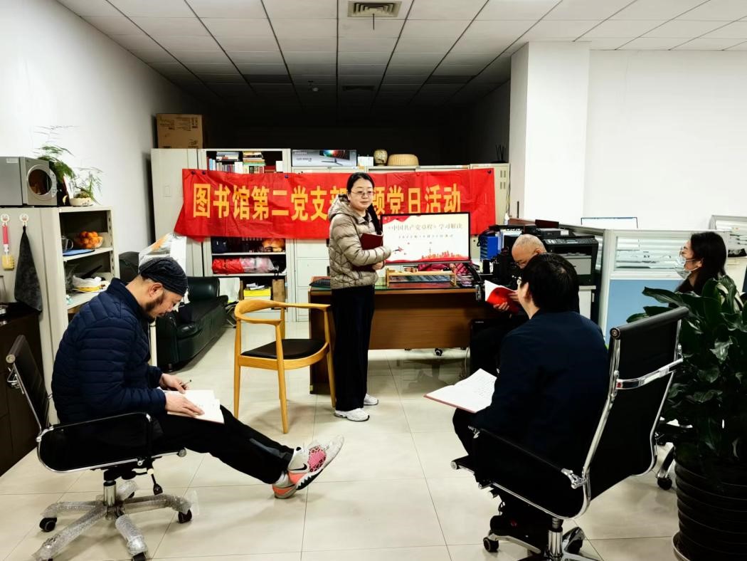 首先由图书馆第二党支部书记申丽珍同志开展题为“《中国共产党章程(修正案)》学习解读”的领学。