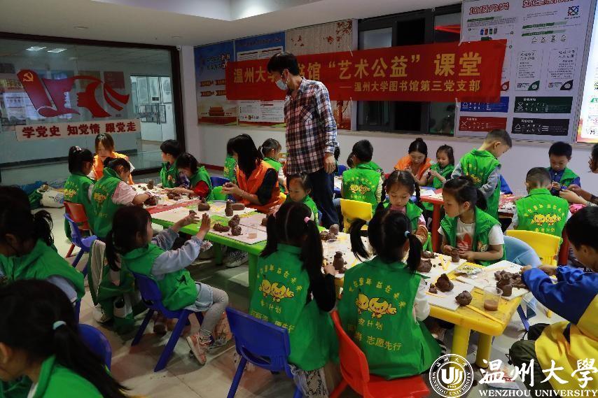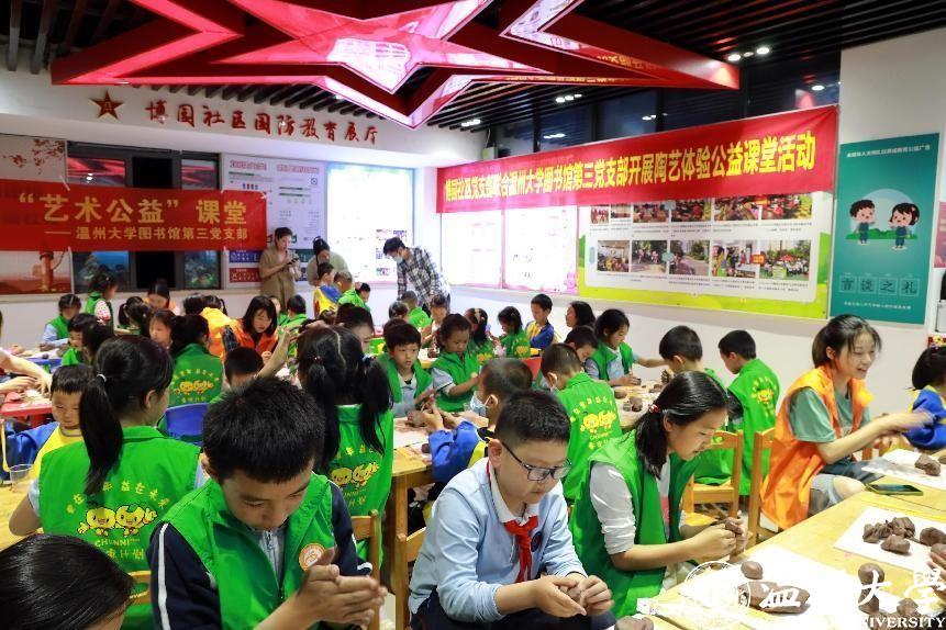 为更好地服务社会,丰富社区青少年的精神文化生活,2023年5月6日晚上,温州大学图书馆第三党支部联合茶山街道博园社区党支部,开展儿童陶艺体验公益课堂活动。