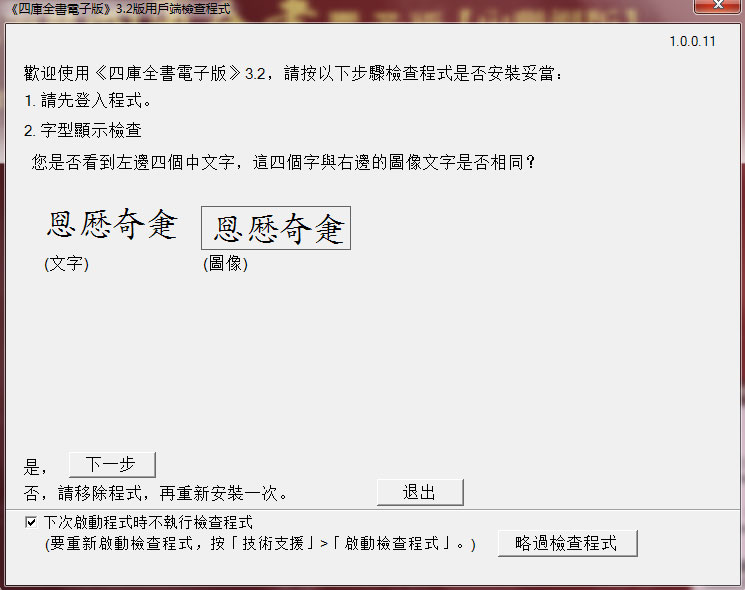 (二)运行桌面上的“文渊阁四库全书内联版”图标,第一次运行时提示