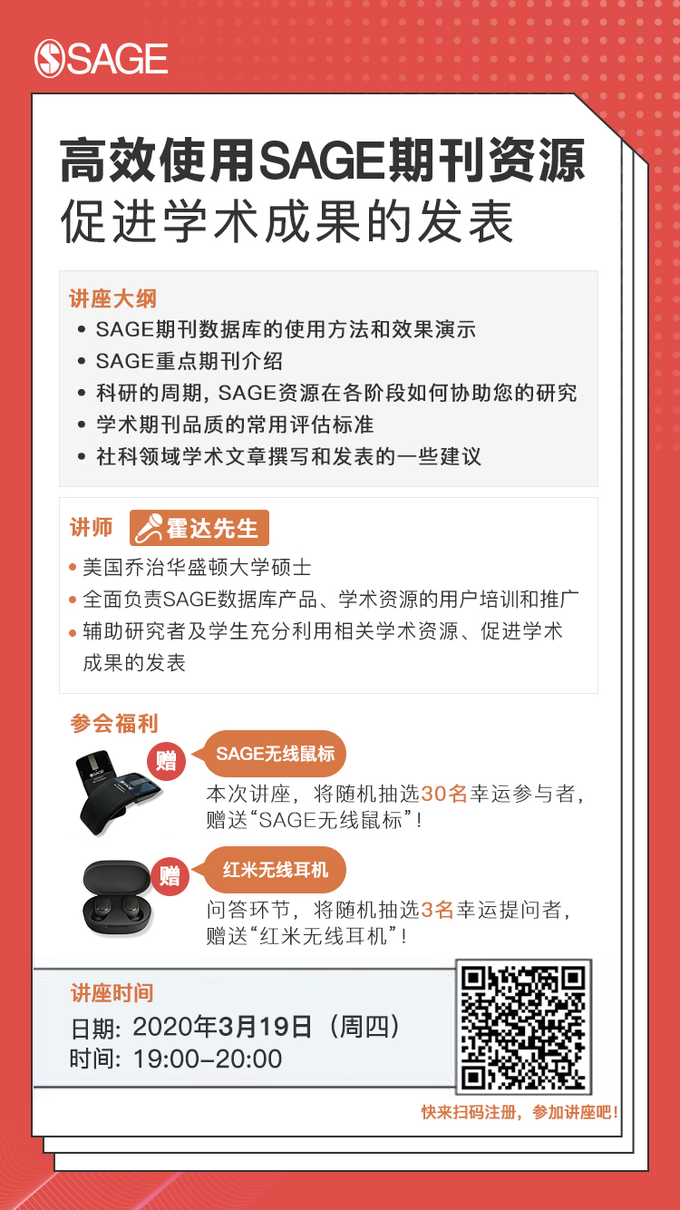 SAGE期刊数据库在线讲座,诚邀我校师生参加!sage数据库在疫情期间不限IP免费访问全文