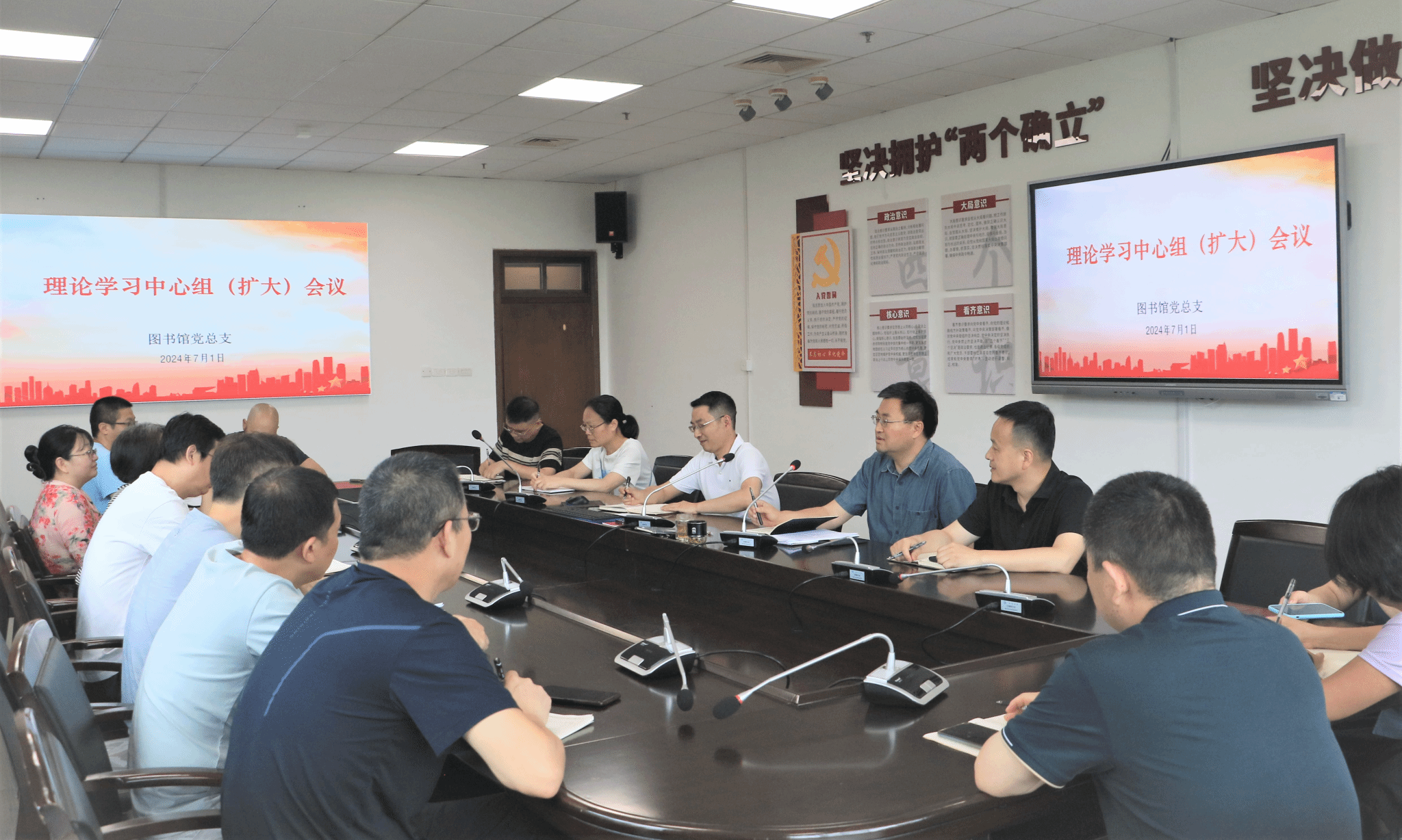 7月1日下午,图书馆党总支在B201会议室召开图书馆党总支理论学习中心组(扩大)会议,会议由馆长、党总支书记孙良好主持,图书馆党总支委员、党支部书记及各部门主任参会。