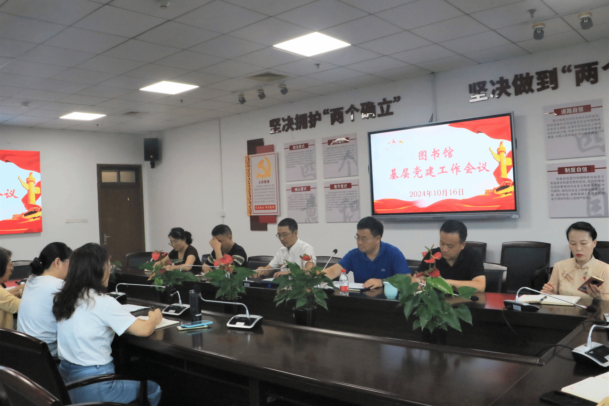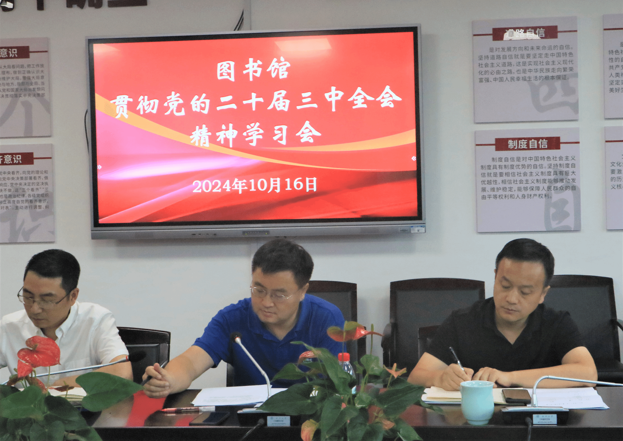 10月16日下午,图书馆党总支在B201会议室召开基层党建工作会暨贯彻党的二十届三中全会精神学习会,会议由馆长、党总支书记孙良好主持,图书馆党总支委员、各党支部书记以及各中心主任参会。