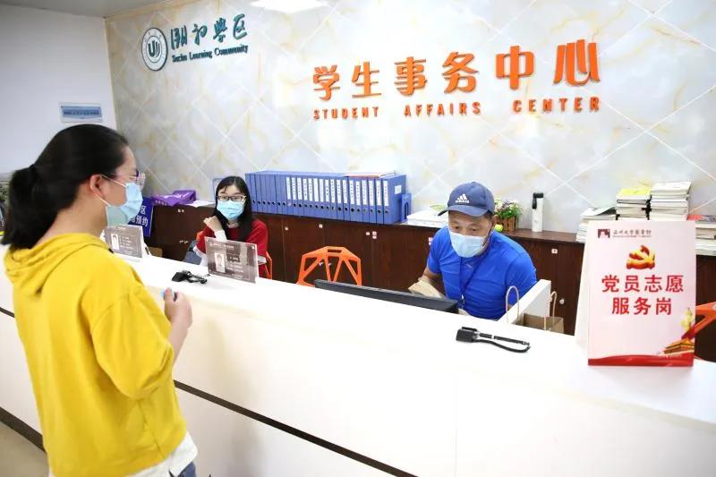 为了方便读者,免去大家在烈烈夏日下来回奔波之苦,也为了让每一位读者都能更快更及时地还书,图书馆安排专人到学区为师生提供还书服务。馆里出动了黄显堂、马宏伟两位部主任和工会主席孙坚,带领技术服务部的王慕抽、林其东、陈永选等几位党员同志扛着仪器兵分三路到步青学区、溯初学区、超豪学区的学生事务中心集中为读者办理还书业务。