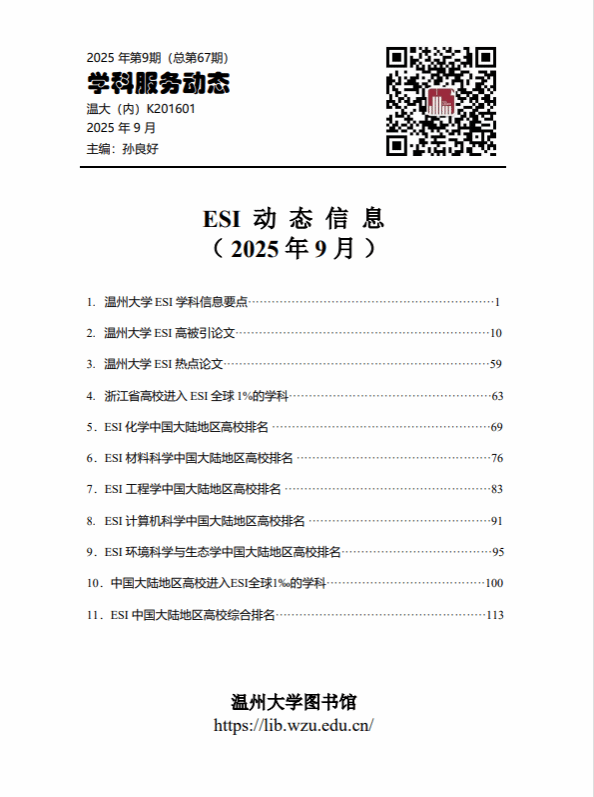 学科服务动态 - ESI动态信息(2025年9月)