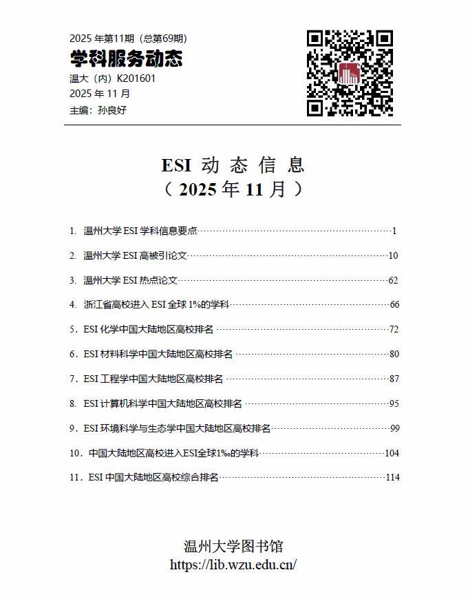 上一条:学科服务动态 - ESI动态信息(2026年1月) 下一条:学科服务动态 - ESI动态信息(2025年9月)