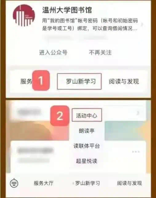 参与活动的读者,可进入温州大学图书馆微信公众号,点击“罗山新学习”栏目,选择相应的活动进行报名即可。详见下图: