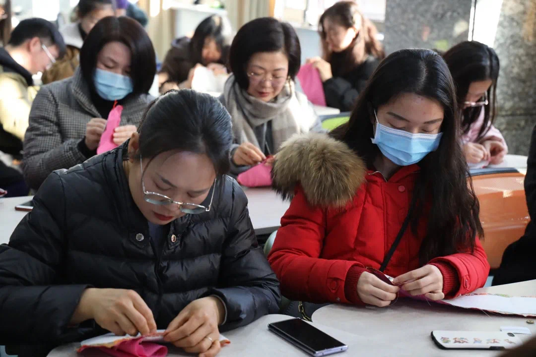 在许老师的悉心指导下,跃跃欲试的读者或埋首缝制,或低声交流缝制技巧与心得,忙得是不亦乐乎。