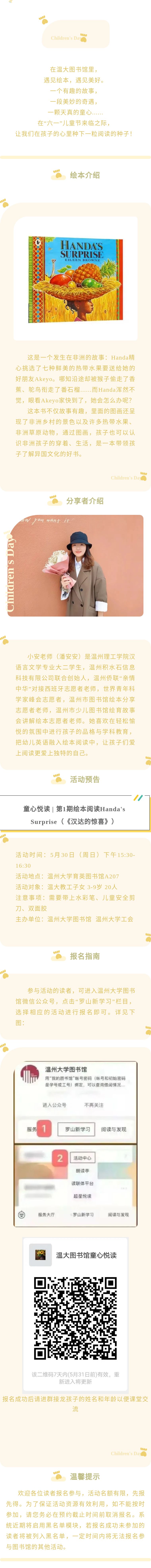活动预告:童心悦读 | 第1期绘本阅读Handa's Surprise(《汉达的惊喜》)
