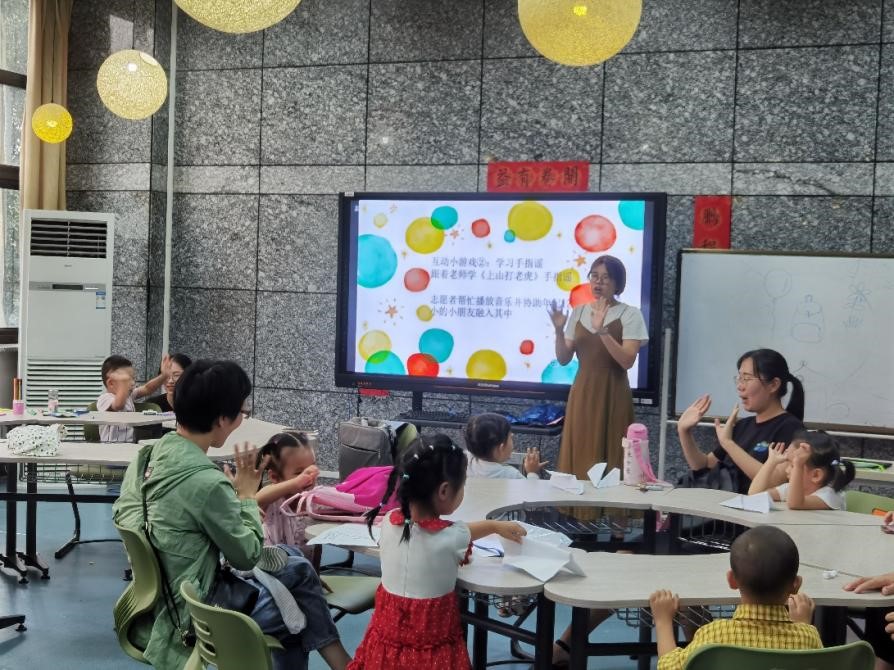 在课程的最后,小商老师带领小朋友们学习手指谣《上山打老虎》,小朋友们配合老师边做动作边唱歌,在欢快的童谣声中。我们的第四期“童心悦读”绘本活动圆满结束!