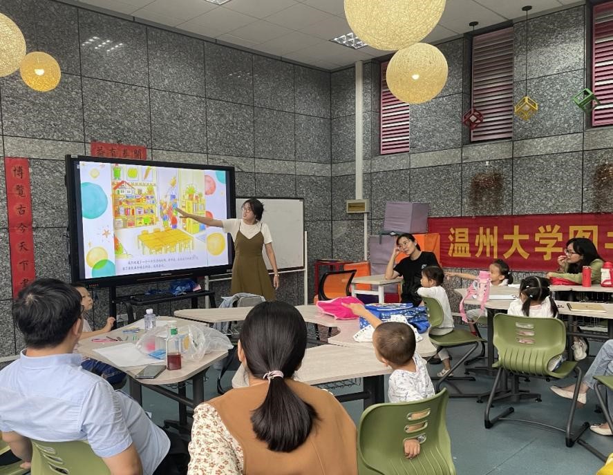 来源:图书馆 作者: 发布时间:2021-10-20 浏览次数:[ ]次10月16日下午,装扮一新的图书馆A207教室迎来了一张张可爱的笑脸,“童心悦读”活动又开始了,来自温州理工学院文学与传媒学院的商佳佳同学(小商老师)和来自温大教育学院的徐荟同学(小徐老师)分别担任第四期和第五期的主讲老师。