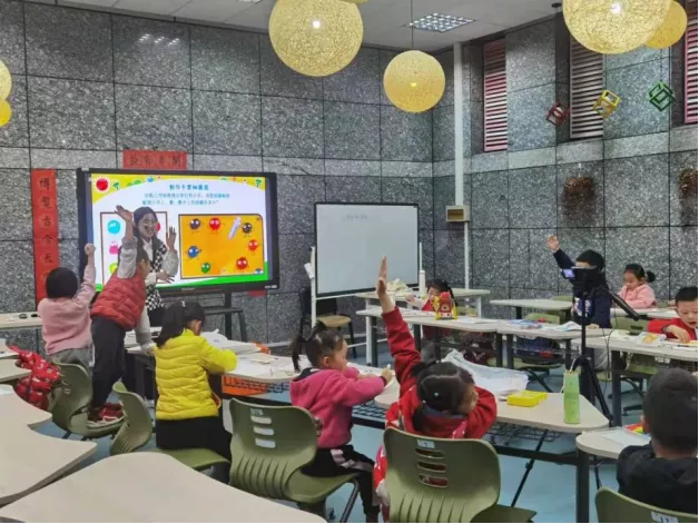 在解读过程中,小于老师用趣味性的语言提起孩子兴趣,穿插问题让孩子充分地思考和描述,提高他们的积极性;并不时关注孩子们的表现,鼓励羞怯的孩子举手回答问题,回答正确与否都竖起赞扬的大拇指!