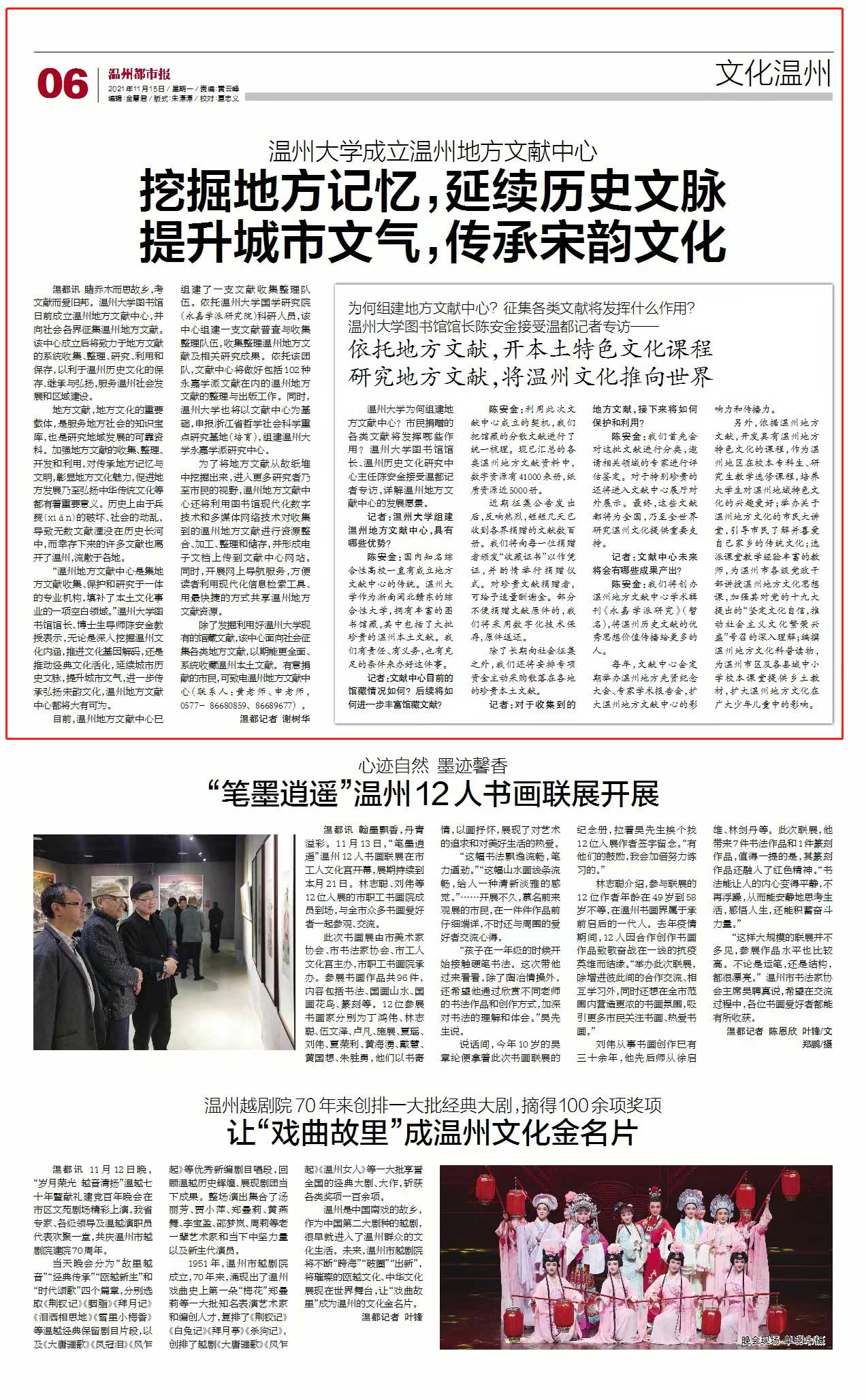 温州都市报:温州大学成立温州地方文献中心——挖掘地方记忆,延续历史文脉|提升城市文气,传承宋韵文化