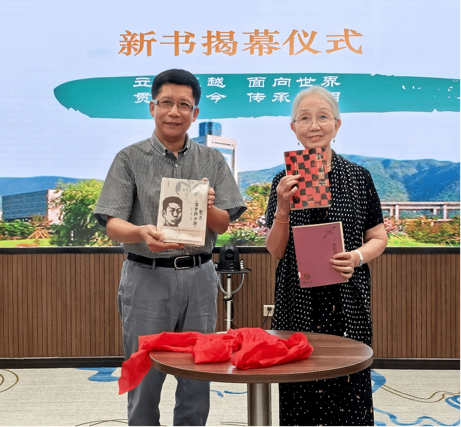 在庄重的氛围中,赵蘅女士、曹凌云秘书长共同为赵瑞蕻先生重版新书揭幕。